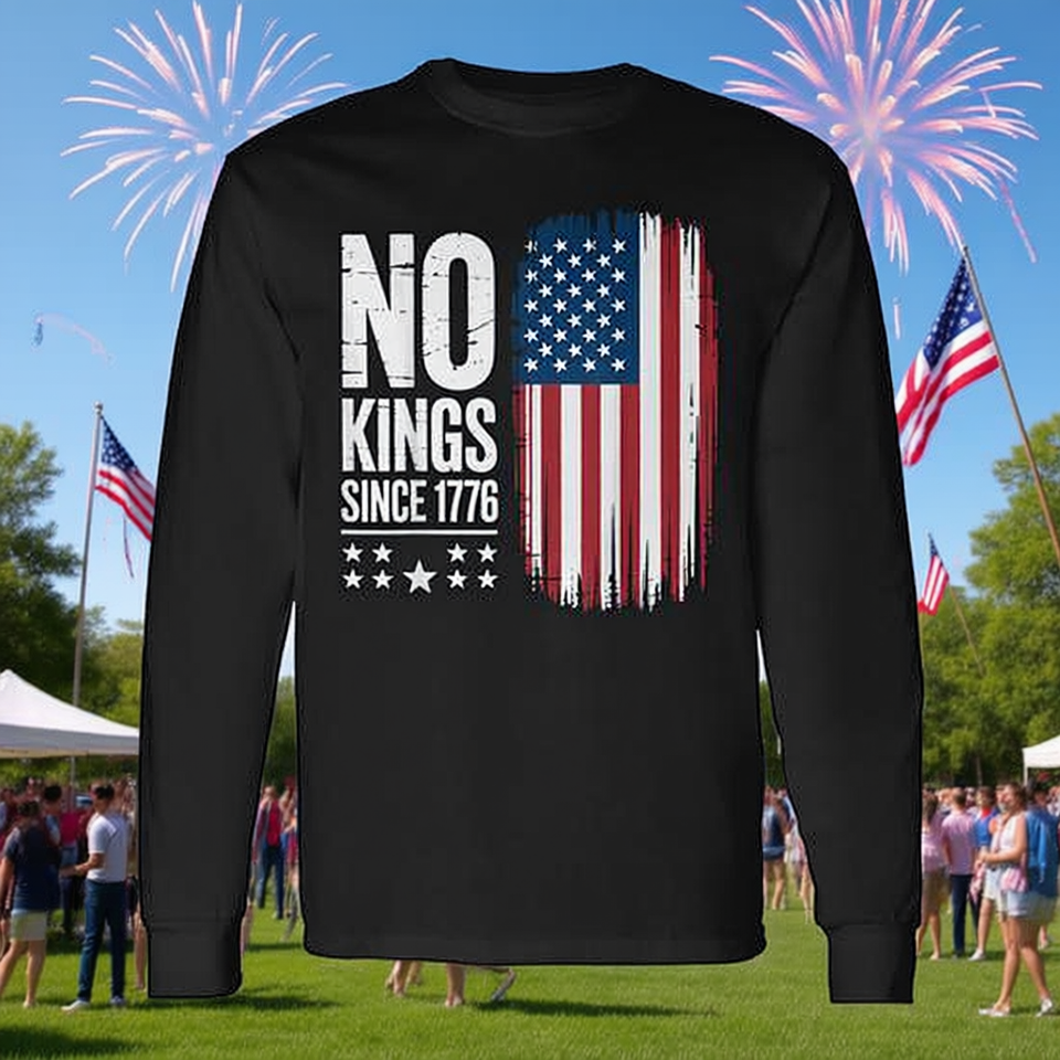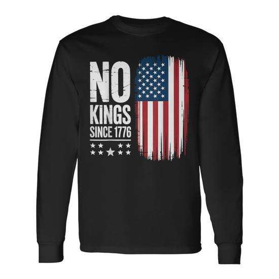 No Kings Since 1776 T-shirt a maniche lunghe con bandiera americana, abbigliamento per il Giorno dell'Indipendenza