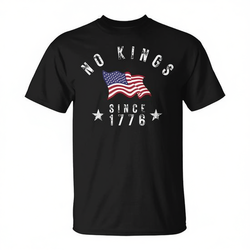 T-shirt con bandiera degli Stati Uniti No Kings Since 1776, manica corta, girocollo, design promozionale unisex per adulti