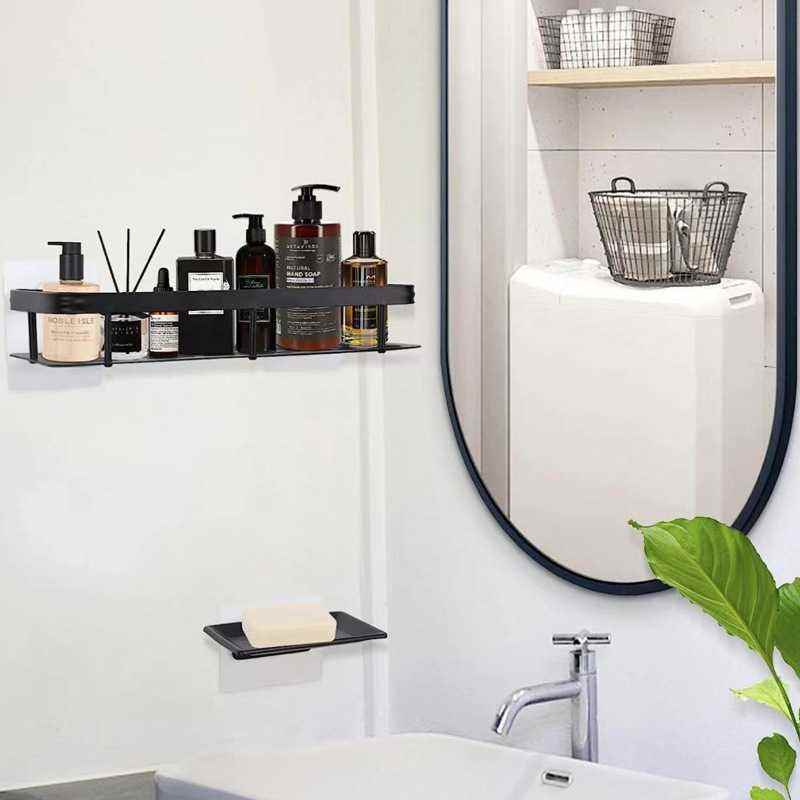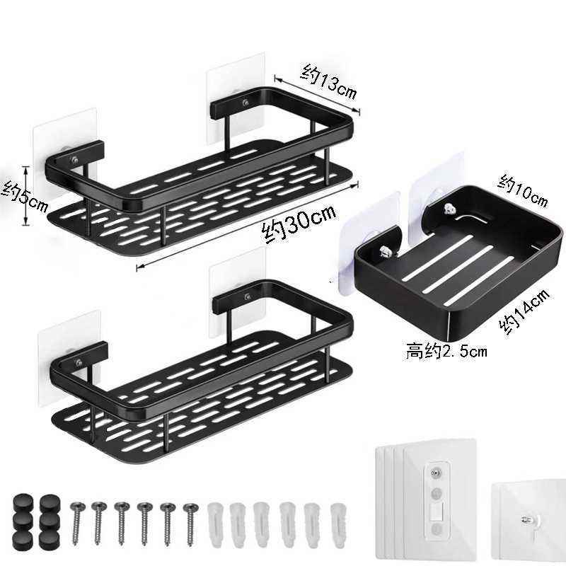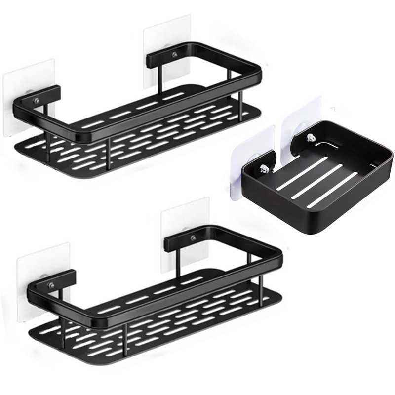 Nessuno spazio di punzonatura combinazione di alluminio nero con portasapone bagno pratico portaoggetti a ventosa a muro