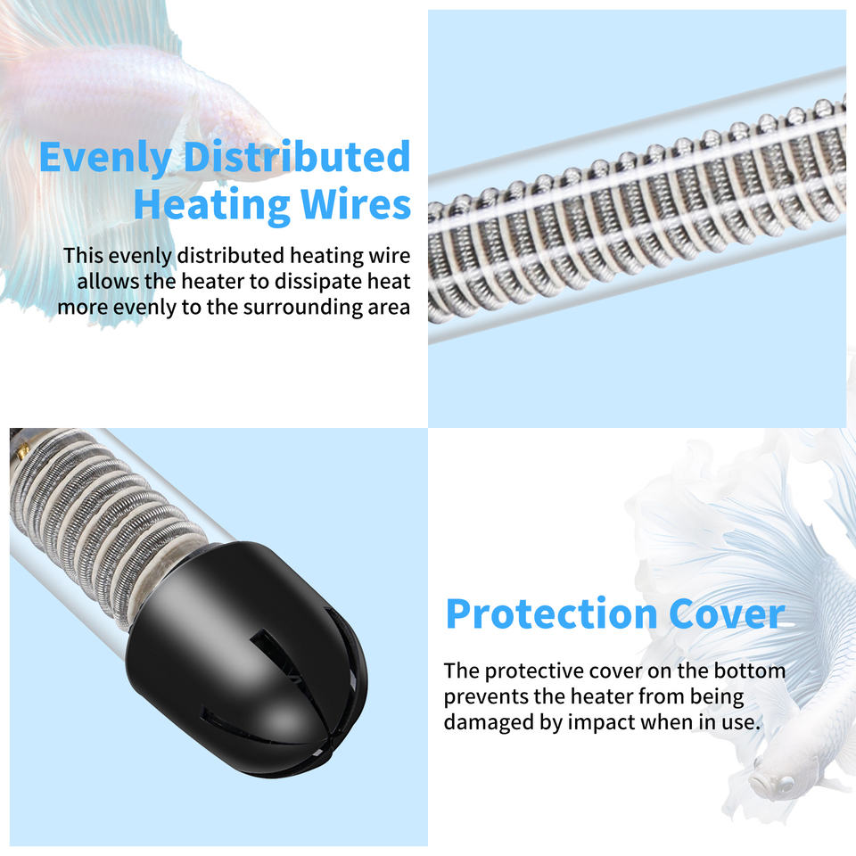Nobleza 100W Durable Submersible Aquarium Heater Thermostat-Controlled 30-100L Fish Tank Easy Operation Plastic Ceramic Power