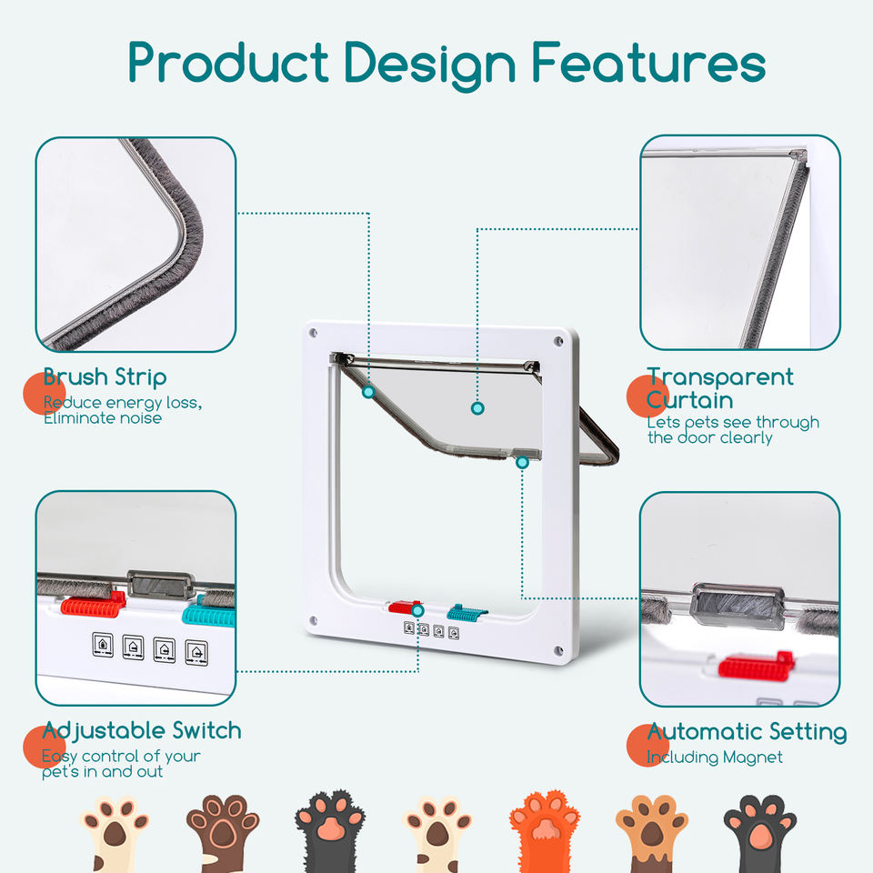 Nobleza 4-Way Magnetic Cat Flap Pet Door for Cats and Small Dogs Small Animal Supplies