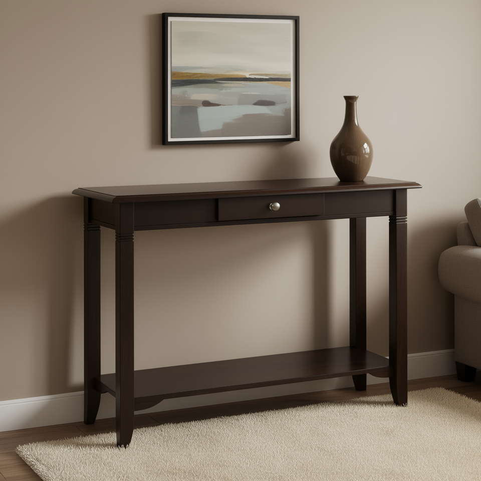 Consolle Nolan con cassetto in legno massello, design moderno, arredamento per soggiorno, decorazioni per la casa, stile elegante