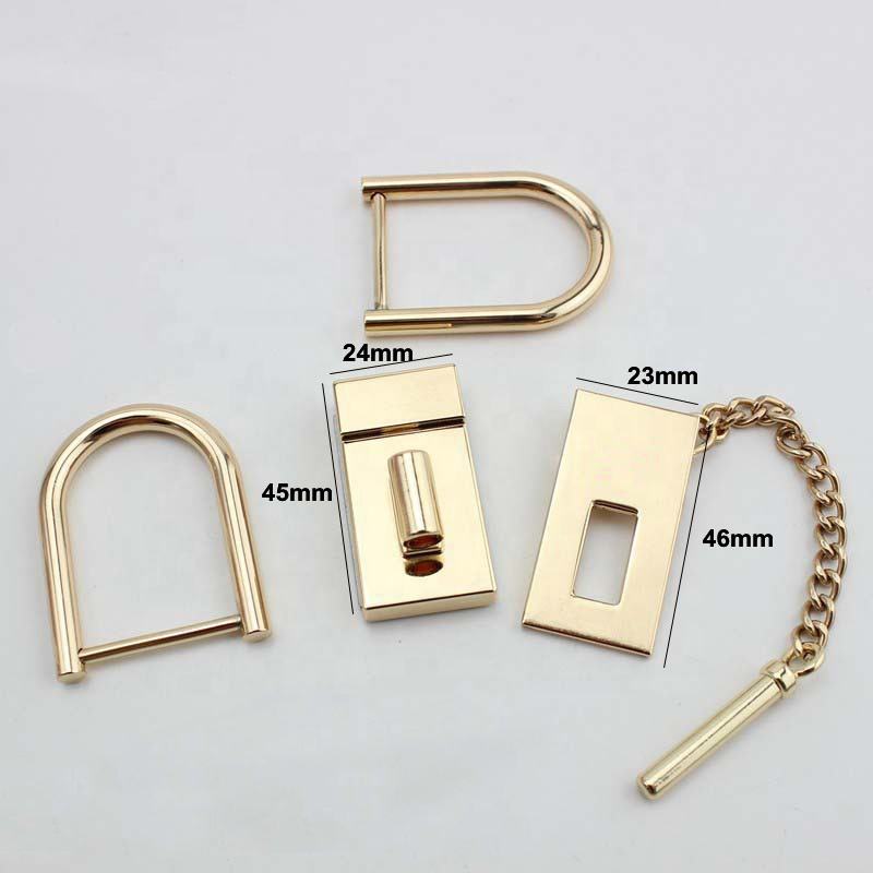 Nolvo World bag lock set,gold light gold lock 120cm chain crossbody bag Big screw D rings set per Hardware in vera pelle