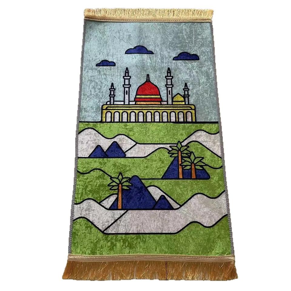 Tappetino da Preghiera Islamico per Bambini con Stampa Digitale Antiscivolo