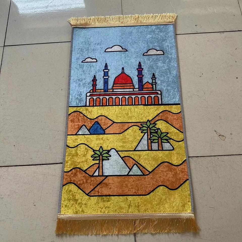Nome del prodotto:Tappetino da Preghiera Islamico per Bambini con Stampa Digitale Antiscivolo