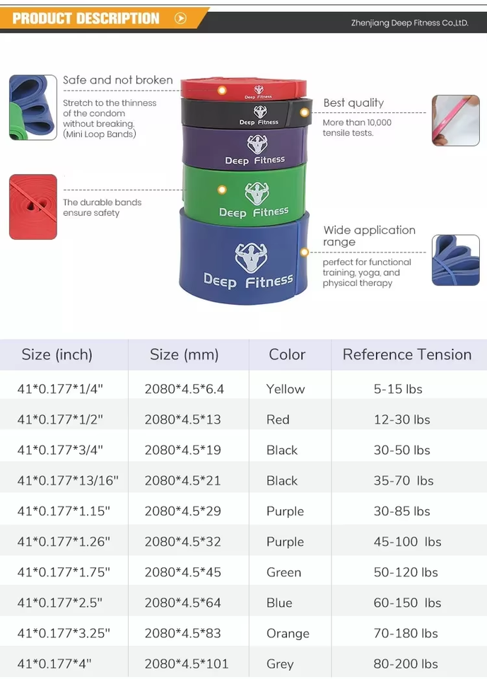 Set di Bande di Resistenza Antiscivolo ad Alta Elasticità con Logo Personalizzato, per Esercizi di Sollevamento e Allenamento Anca, 5-150 Libbre, per Palestra Domestica