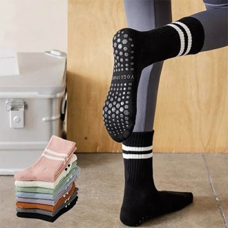 Non-Slip Mid-Calf Sports & Fitness Socks Anti-Slip Pilates & Yoga Workout Socks