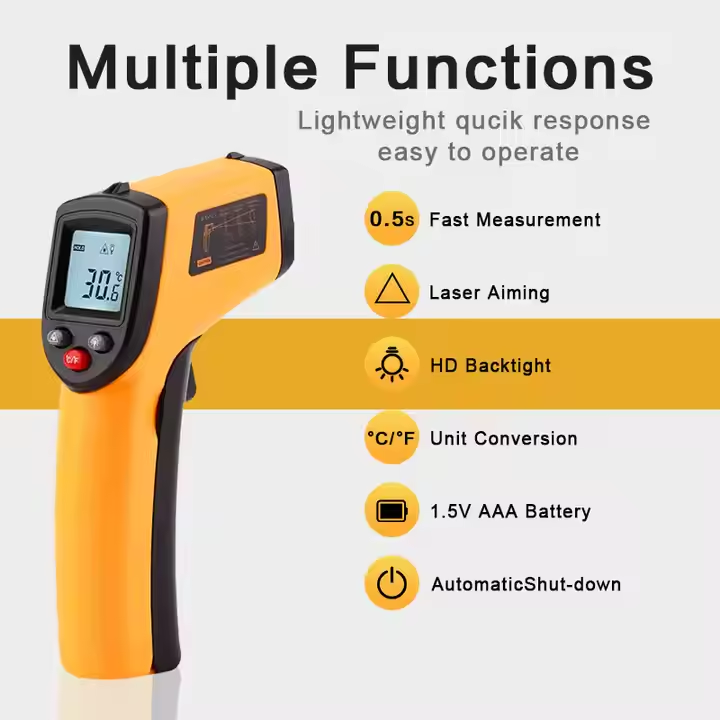 Termometro Laser Digitale Industriale a Infrarossi Senza Contatto con Emissività Regolabile e Display LCD Retroilluminato