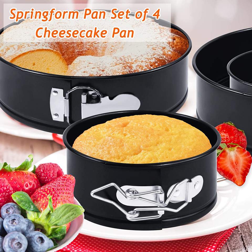 Set di padelle antiaderenti a forma di molla da 4 pezzi, Set di teglie rotonde da 4/7/9/10 pollici con fondo rimovibile per la cottura