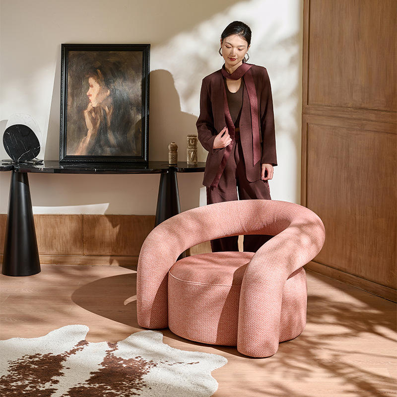 Nora Single Sofa Chair Pink Curved Design Soft Fabric Living Room Chair Framework Structure