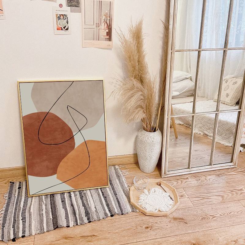 Dipinto Astratto Nordico Moderno Minimalista con Cornice Dorata, Arte di Lusso con Blocchi di Colore e Linee in Cristallo e Porcellana per Arredamento Casa