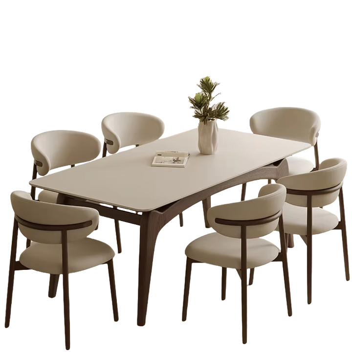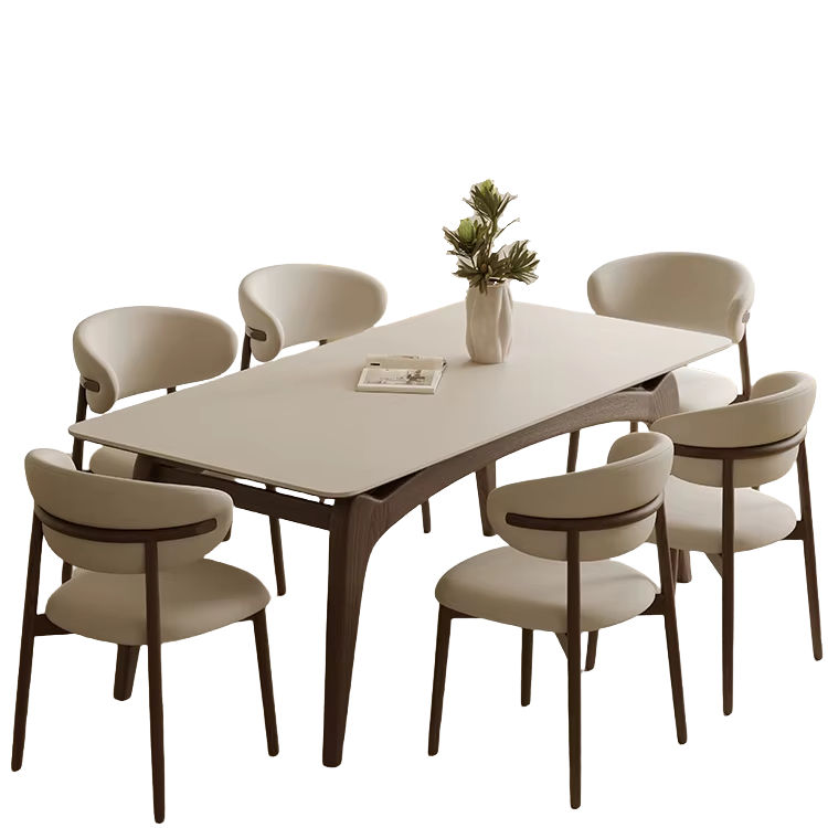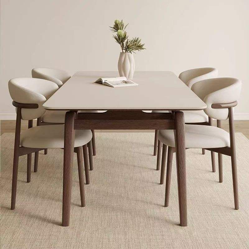 Nordic Design Modern Solid Wood Rectangle Dining Room Restaurant Dining Table Sintered Stone with Solid Wood Legs