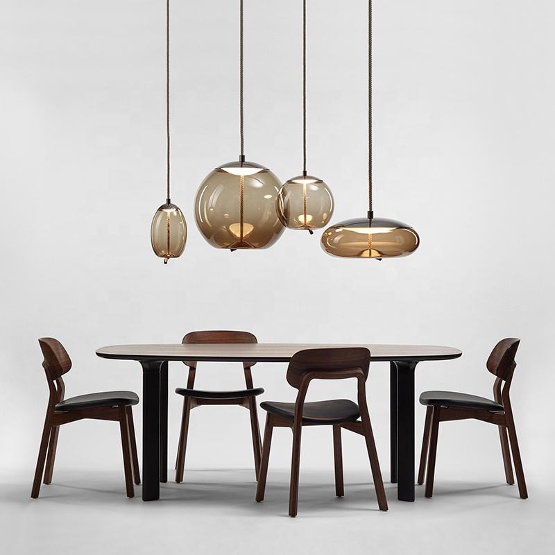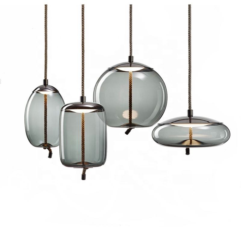 Lampadario Nordico in Vetro con Corda, Moderna Sfera di Vetro con Decorazione a Corda per Soggiorno