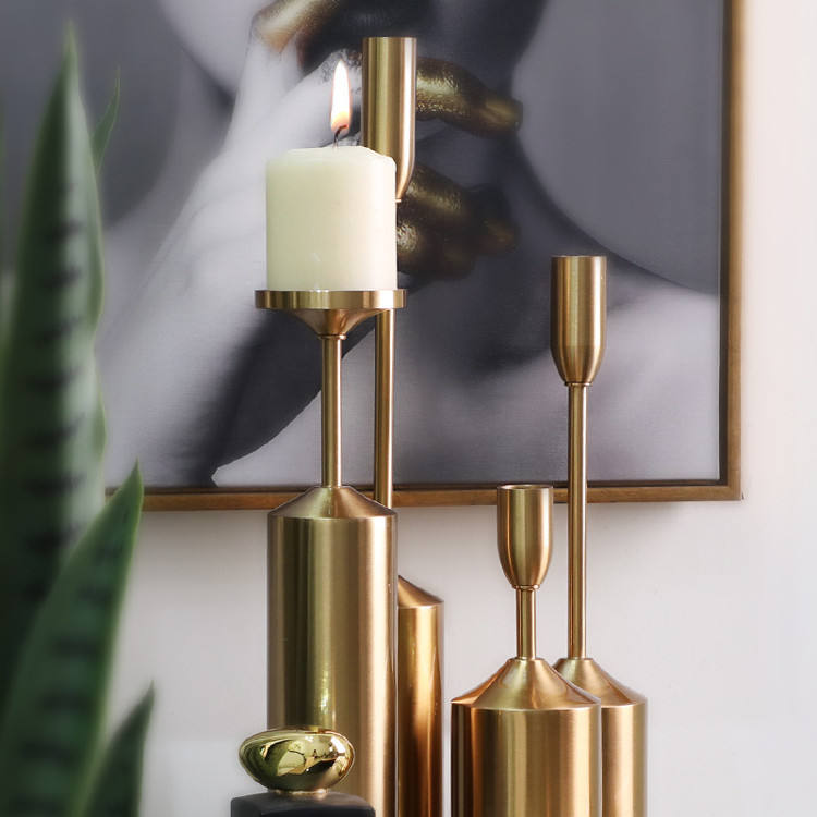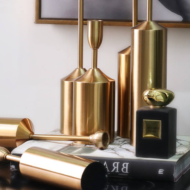 Candelabro da Tavolo Nordico Dorato, Decorazione Moderna per la Casa, Portacandele in Metallo di Lusso con Elettroplaccatura Dorata