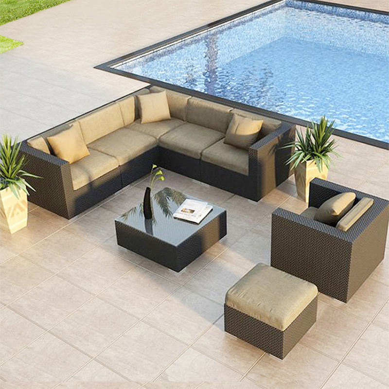 Nordic Hotel Terrace Leisure Outdoor Furniture Corner Sofa Set 1 2 3 Seater PE Rattan Garden Sofa