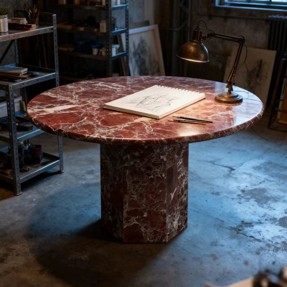 Nordic Italian Style Living Room Furniture - Round Coffee Table, Roso Lepanto Marble Coffee Table & Dining Table Set