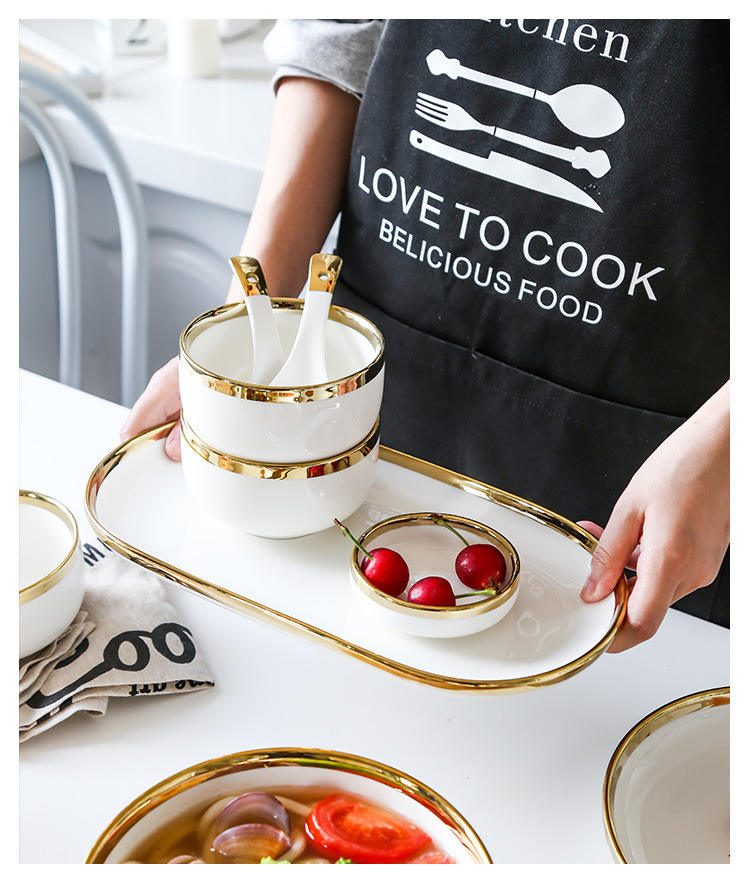 Nordic Light Luxury bordino d'oro piatto piatto piatto per 2-8 persone stoviglie per uso domestico con zuppa di riso ciotole di verdure e piatti