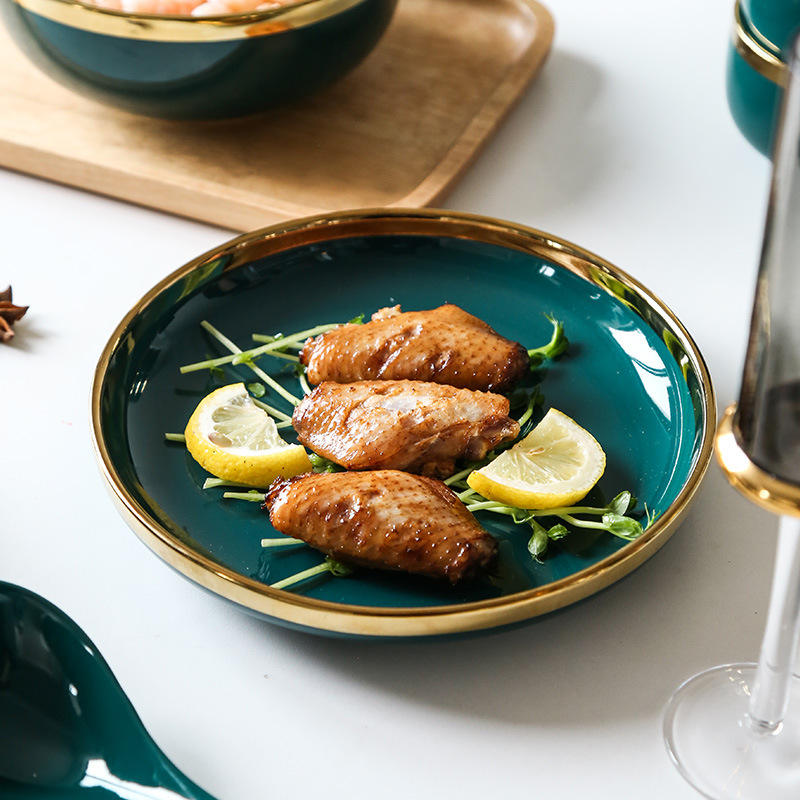 Set di Piatti e Ciotole di Lusso in Stile Nordico con Bordo Dorato per 2-8 Persone, Stoviglie per Casa con Ciotole per Riso, Zuppa e Verdure