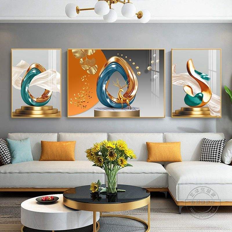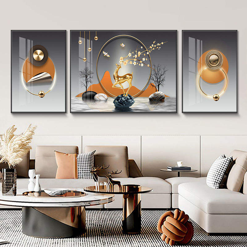 Nordic lusso decorativo moderno astratto 3 pannelli cristallo porcellana fiore soggiorno pittura murale decorativa wall art l