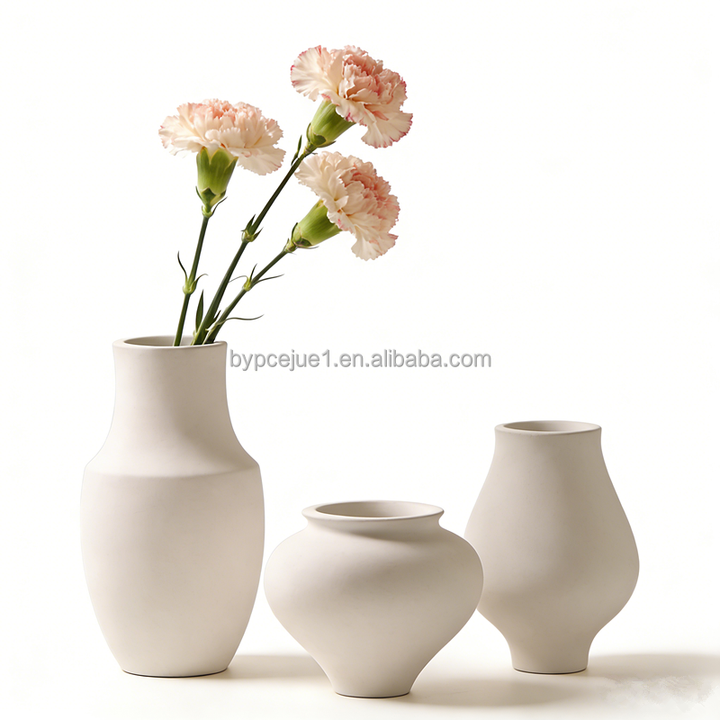 Nordic Minimalist White Concrete Vase Eco-Friendly Cement Material Matte Texture Desktop Vessel Modern Living Room Decor Vase