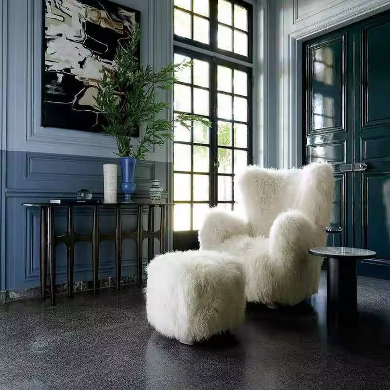 Arredamento nordico Design moderno per la casa comode poltrone in morbida lana con pouf