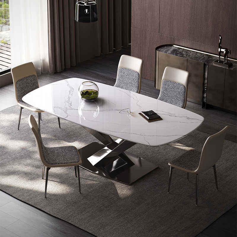 Tavolo da Pranzo di Lusso Moderno Nordico in Marmo Allungabile con Gambe in Metallo Arredo Casa in Offerta per Soggiorno e Cucina