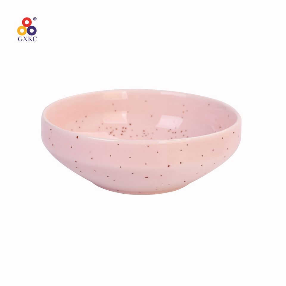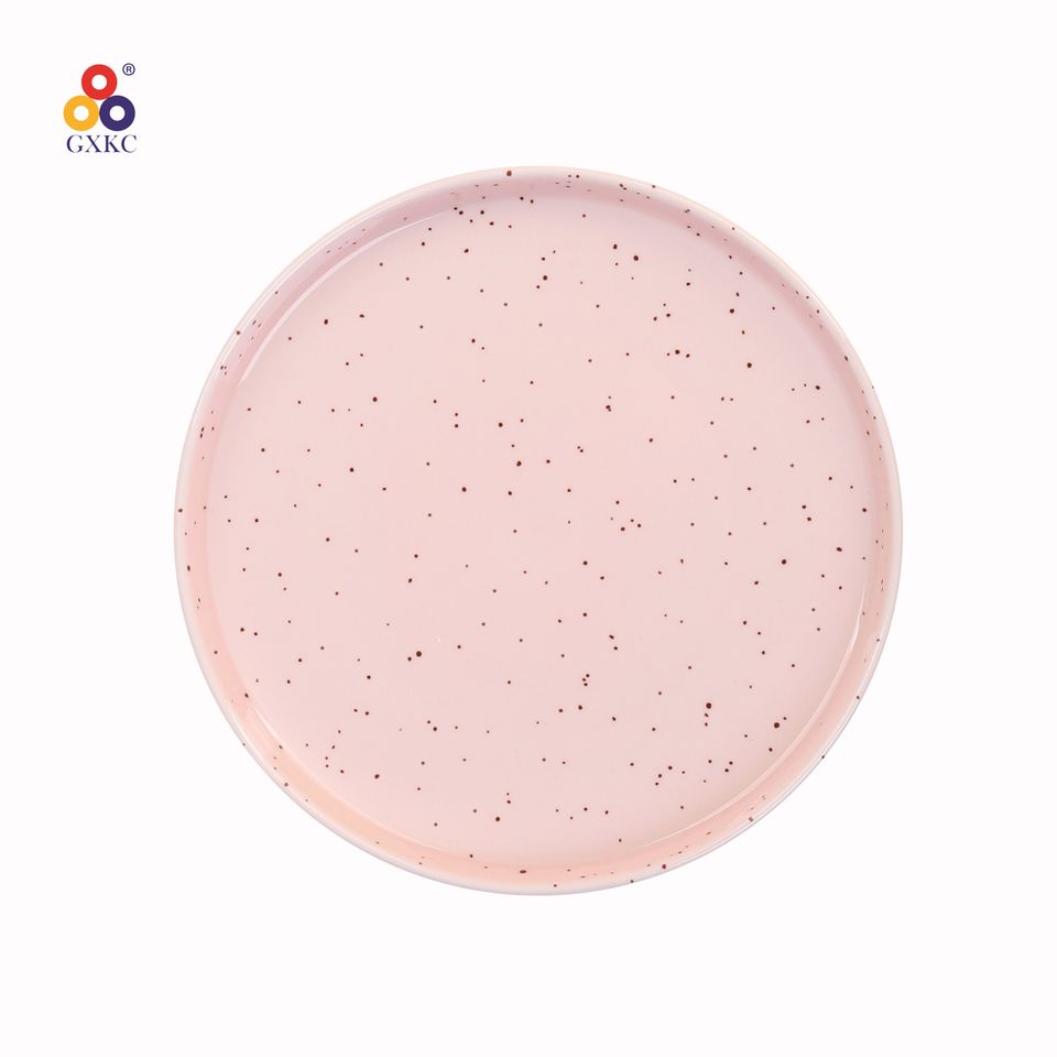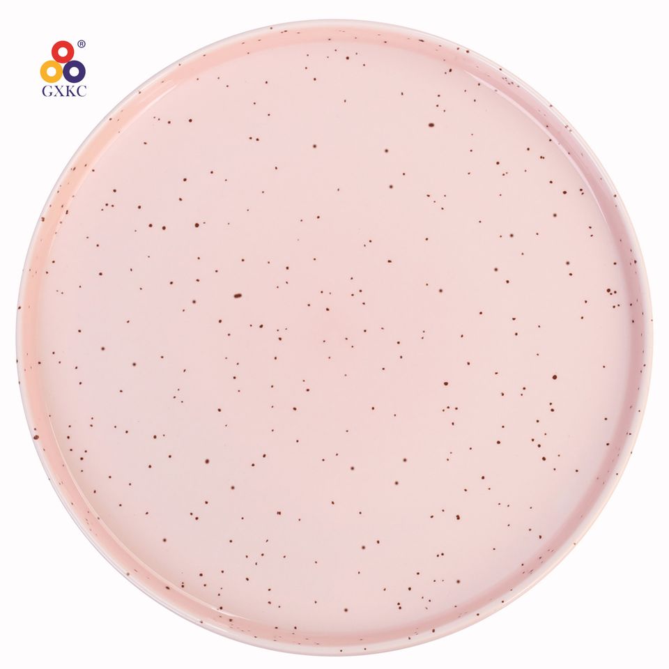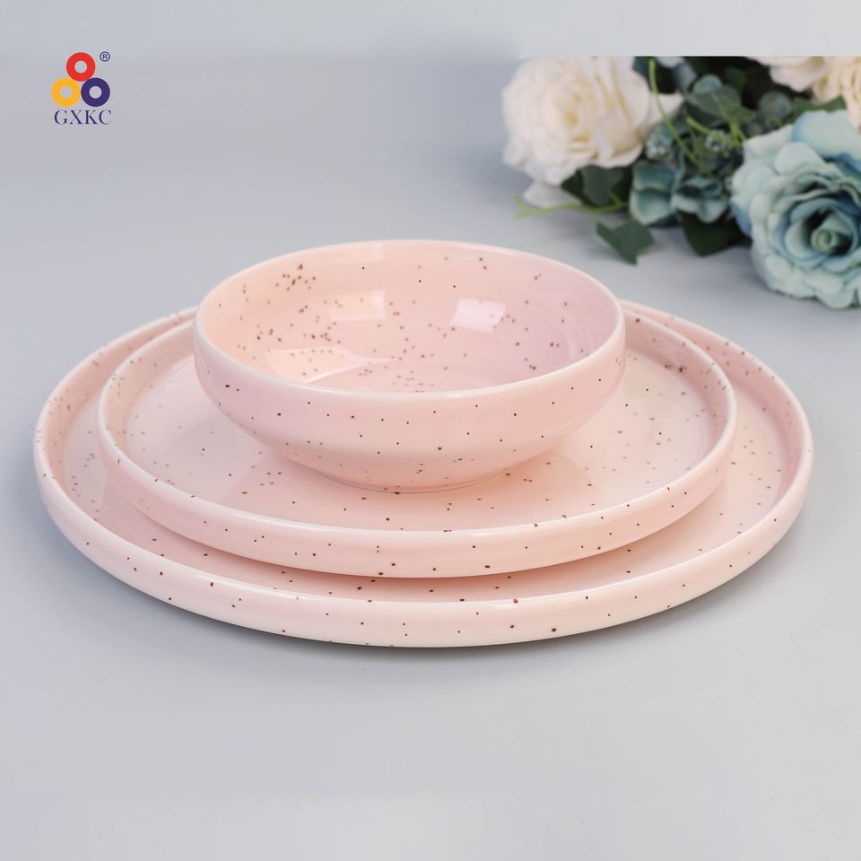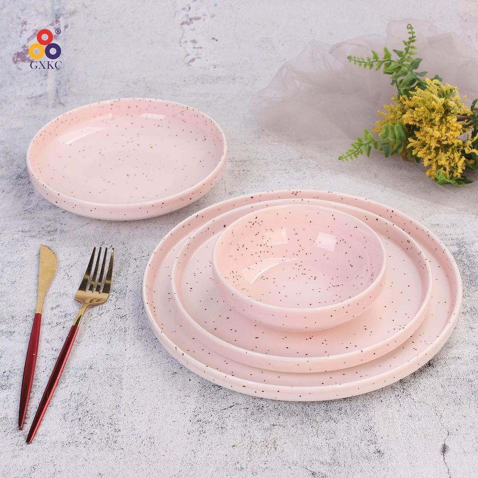 Glassa nordica di colore rosa Set di 12 pezzi di piatti in porcellana ceramica cinese Set piatto di Pasta con flangia diritta con sesamo