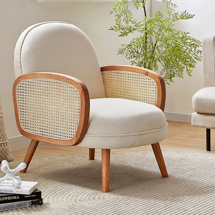 Nome del prodotto:Poltrona moderna in Rattan in legno massello tessuto fatto a mano sedia Relax