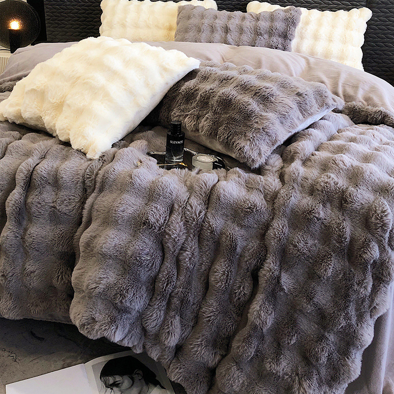 Set di Biancheria da Letto Nordico in Peluche di Coniglio Morbido e Spesso Personalizzabile in Quattro Pezzi per Tutte le Stagioni per Camera da Letto Femminile
