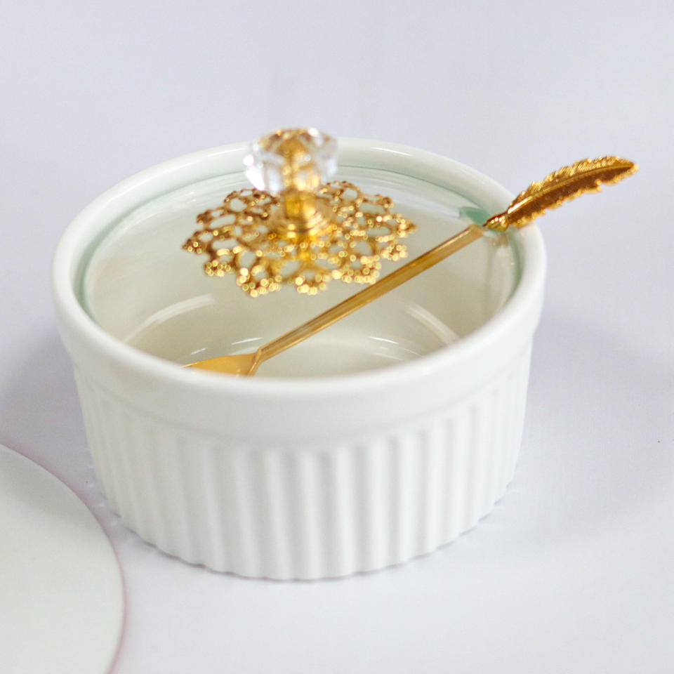 Vaso di spezie e zucchero in ceramica a strisce nordiche in tre pezzi Set moderno per condimenti da scrivania con coperchio e cucchiaio per uso alimentare