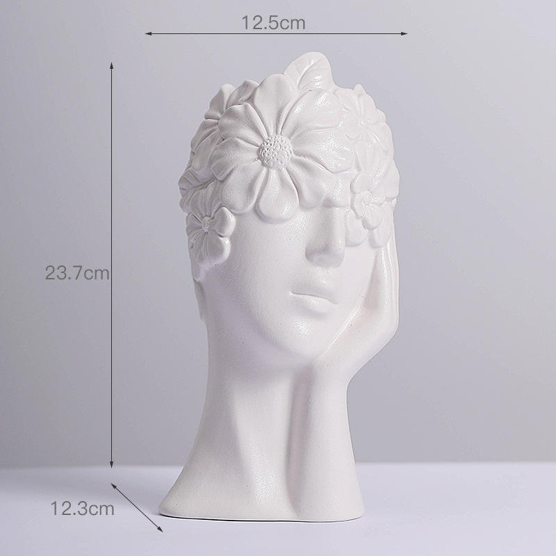 Decorazione per soggiorno in stile nordico forma femminile vaso di fiori ornamenti in ceramica artigianato viso umano vaso di porcellana