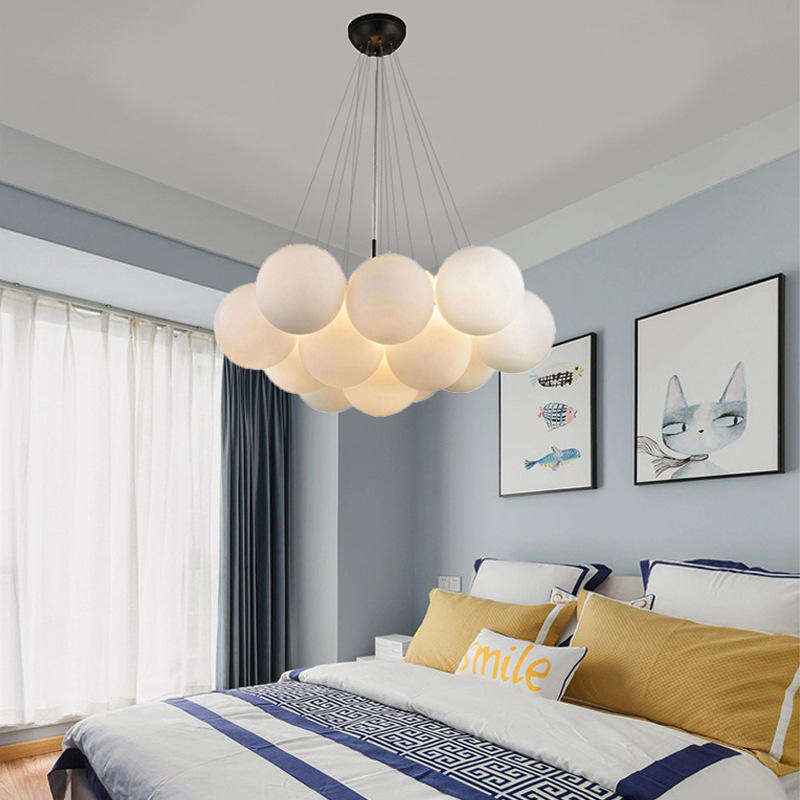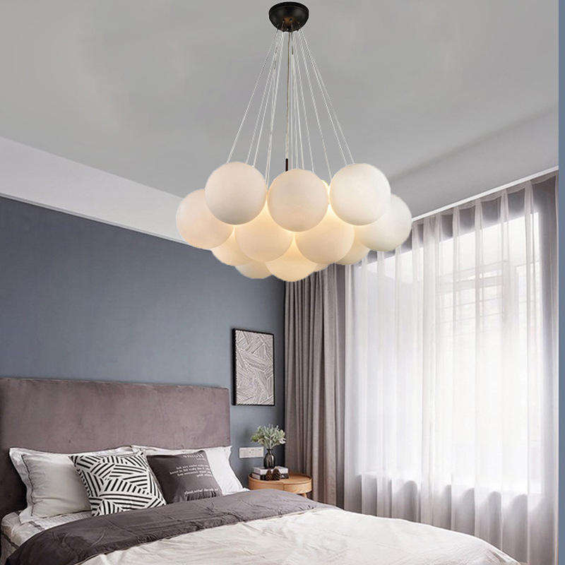 Lampadario a LED moderno in stile nordico, lussuoso lampadario in ferro per soffitti alti con sfere a bolle per camerette o uffici domestici