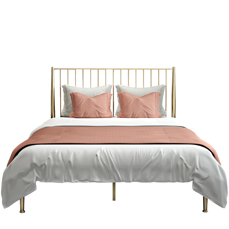 Nordic Style Simple Golden Iron Bed Double Single Bed Frame for Master Bedroom Living Room INS Style Bunk Bed Net Red