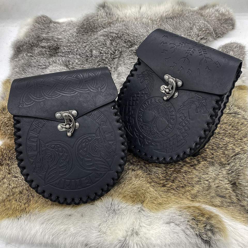 Nordic Vintage Embossed Pu Bag WJF01 Belt Side Pack with Viking Logo Dragons & Wolves Promotional Party Supplies