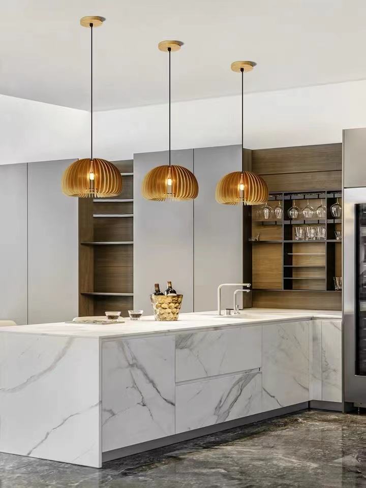 Lampade a Sospensione in Legno Stile Nordico, Lampadario Moderno per Soggiorno, Illuminazione a Sospensione a Forma di Zucca per Casa e Loft