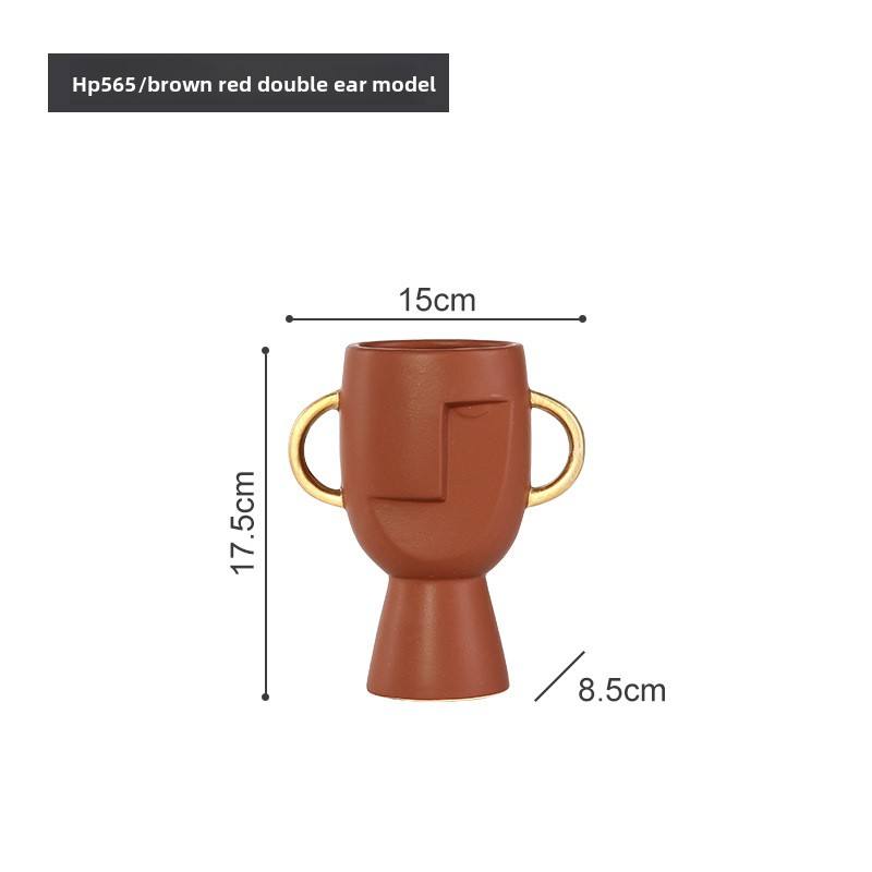 Vaso in Ceramica Stile Nordico con Volto Umano e Smalto Colorato, Ornamento Creativo e Moderno per Arredamento Casa, Modello HP