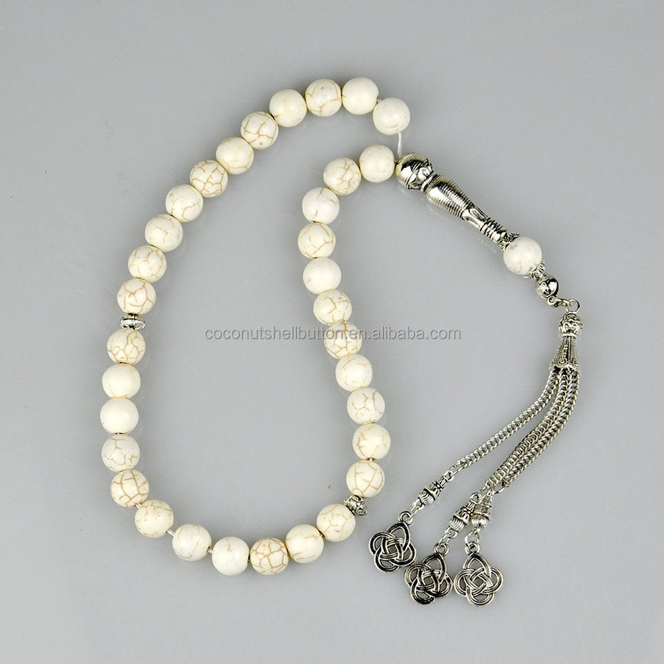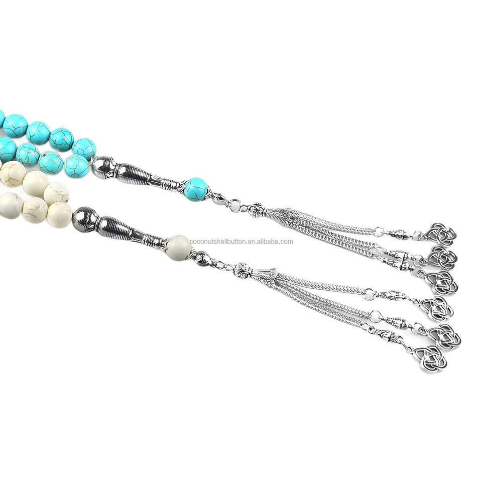 Normale pietra turchese bianca verde 10mm 33 perline braccialetti preghiera pietra religiosa Tasbih rosario
