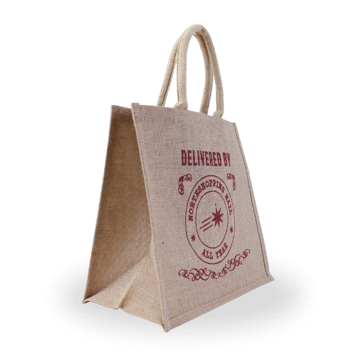 Norteshopping Modern Jute Beach Bag Red Graphics Heat Transfer Printing Medium Size Drawstring Flower Screen for Wine Carrying