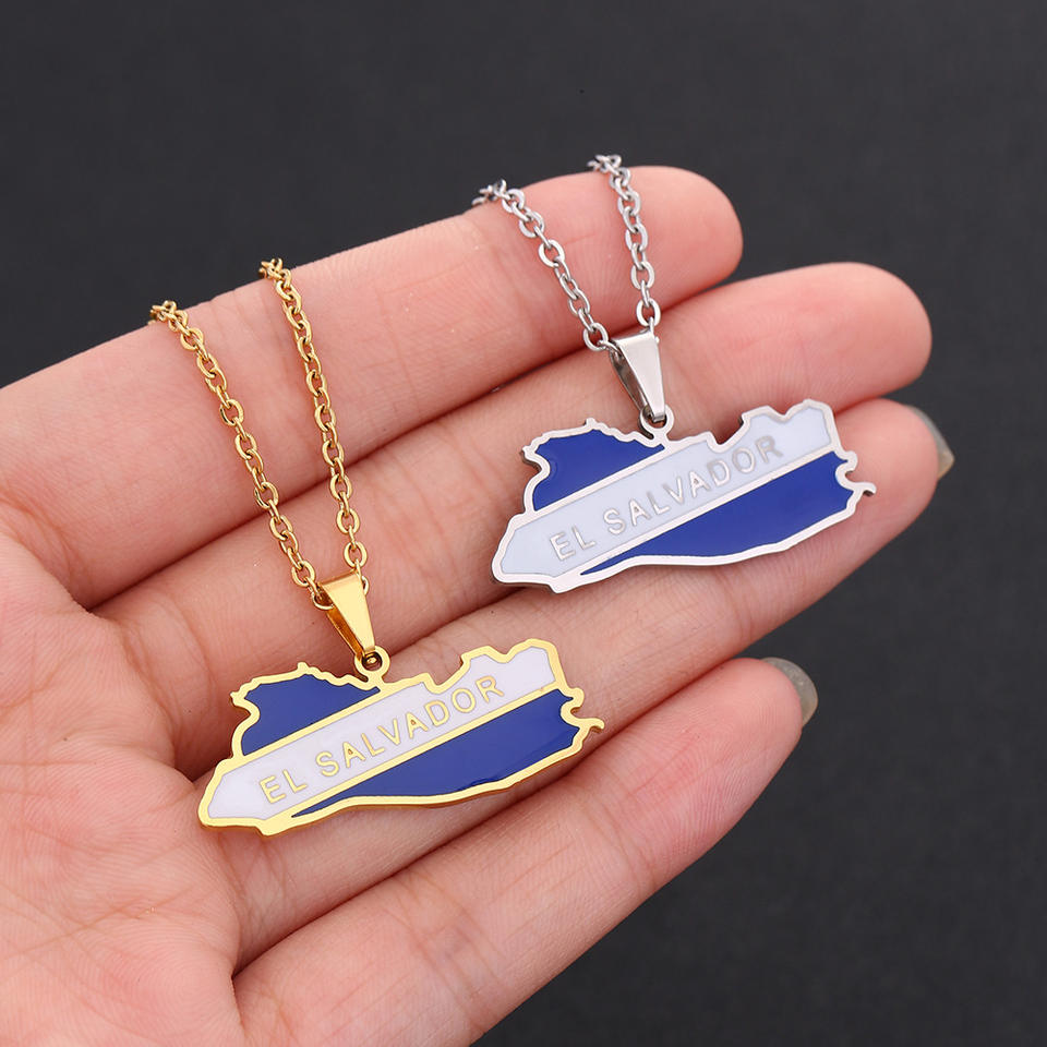 North America El Salvador National Map Flags Waterproof Stainless Steel Fashion Jewelry Necklace Pendant Wholesale for Women Men