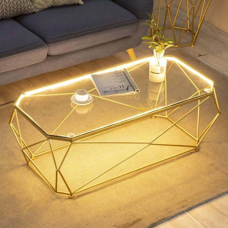 Tavolino da Tè Moderno Stile Nord Europa, Piccolo Tavolo da Salotto di Lusso con Piano in Plexiglass Trasparente