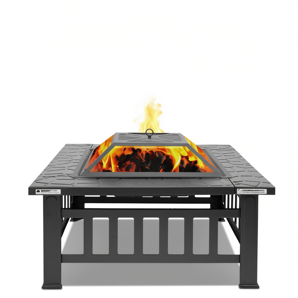 Northton 32-Inch Black Iron Fire Pit With Cooking Grate For Patio Outdoor Use Wood Burning Modern Style