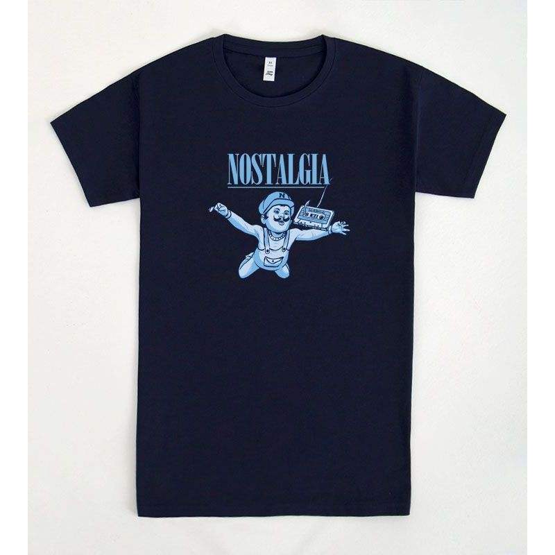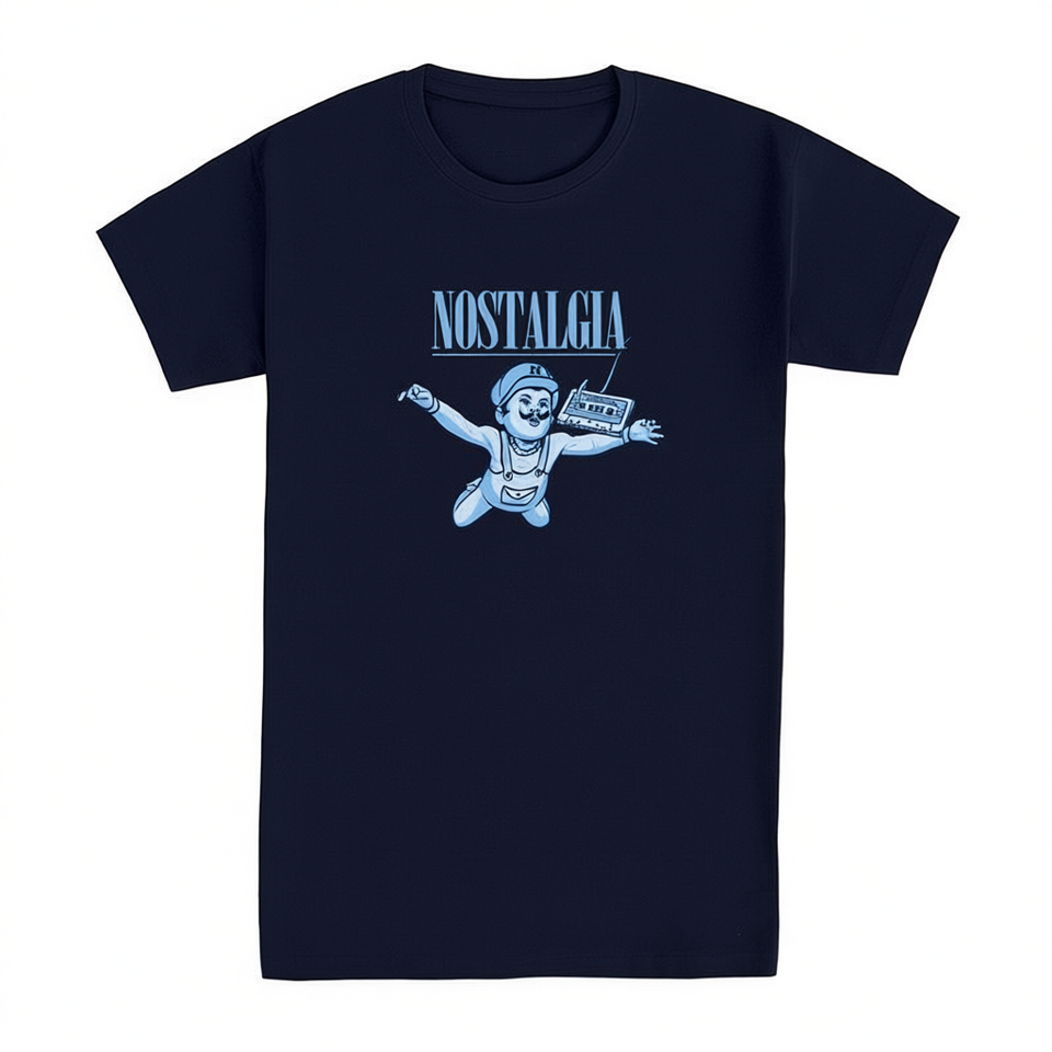 T-shirt Nostalgia Cassette blu navy da uomo taglia M vestibilità classica con design grafico