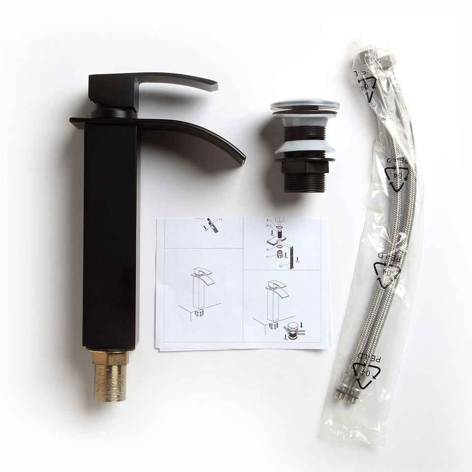 Rubinetto a Cascata Alto in Acciaio Inossidabile Nero Opaco Noto, Resistente, Moderno per Bagno e Toilette