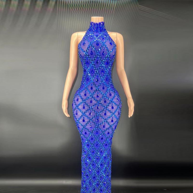 Novance Y2360-H Womens Luxury Clothing 2025 Blue Mesh Diamond Club Dress Casual Dress Sexy Women for Engagement Party Dress