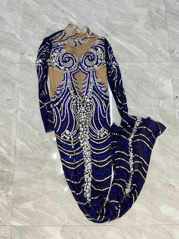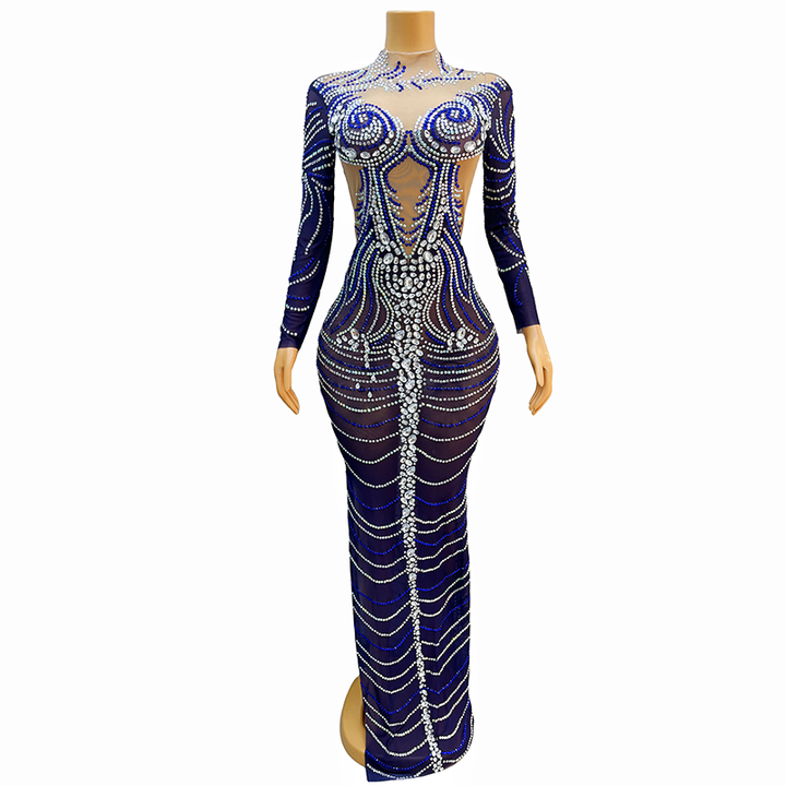 Novance Y3500 Evening Dresses Large Size Long Sleeve Evening Gown 2025 Crystal Wedding Gown Fashion Mesh Prom Clothes