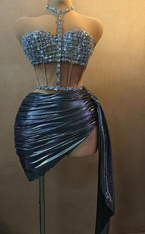 Novance Y3518 Hot Products Low Cut Sleeveless Ladies Club Dress Sexy Mini Shiny Crystals Floral Pattern Dress Woman