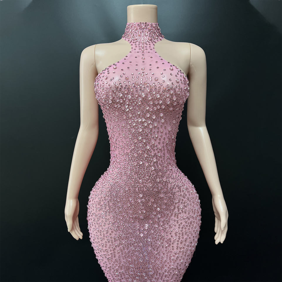 Novance Y4434 Online Wholesale Supplier Pink Fully-jewelled Luxurious Evening Dresses Halter Elegant Women's Birthday Dress