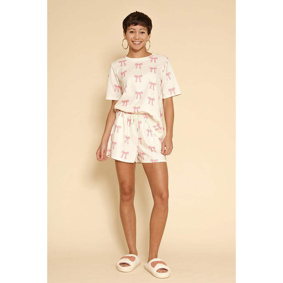 Novità pantaloncini in due pezzi lavorati a trama Waffle stampati con cintura elastica e coulisse