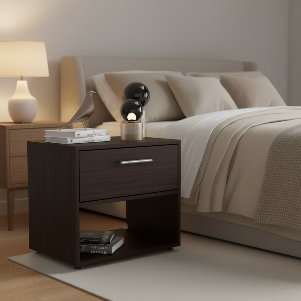 Noxen 1-Drawer Nightstand Walnut Wood Modern Bedroom Storage Furniture