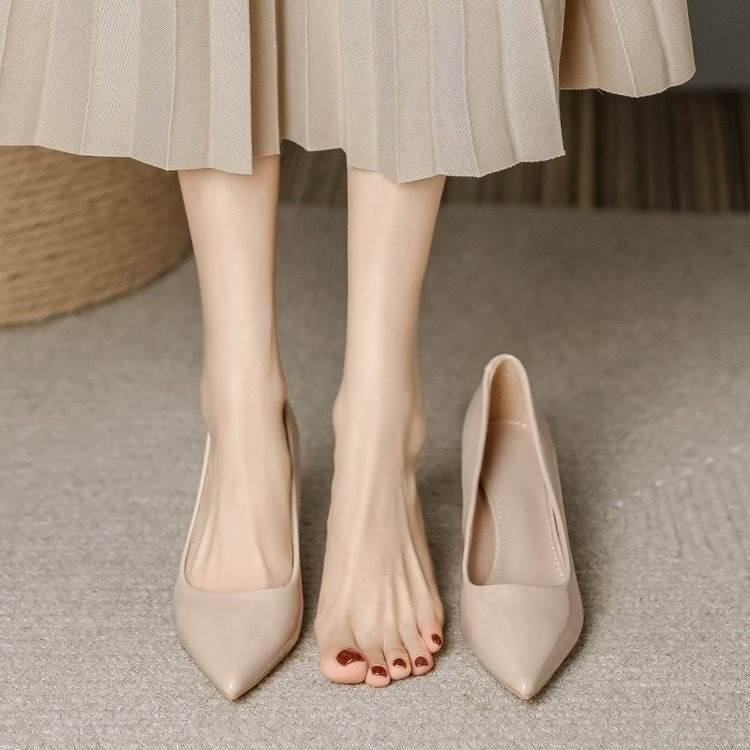 Sandali da donna nude con tacco spesso, chiusura anteriore con lacci, nuovi ed eleganti, a punta, con plateau da 5 cm, che non stancano i piedi